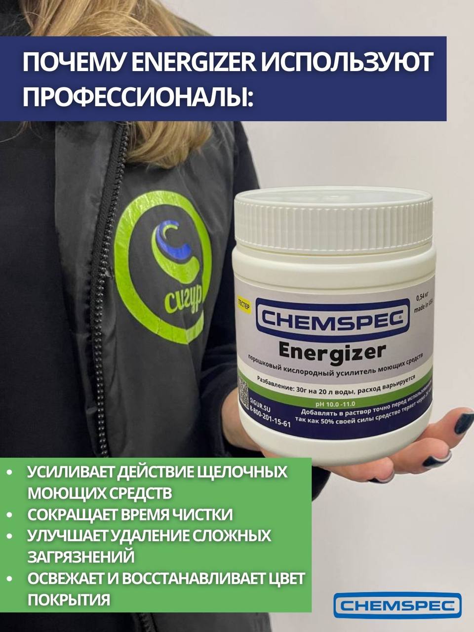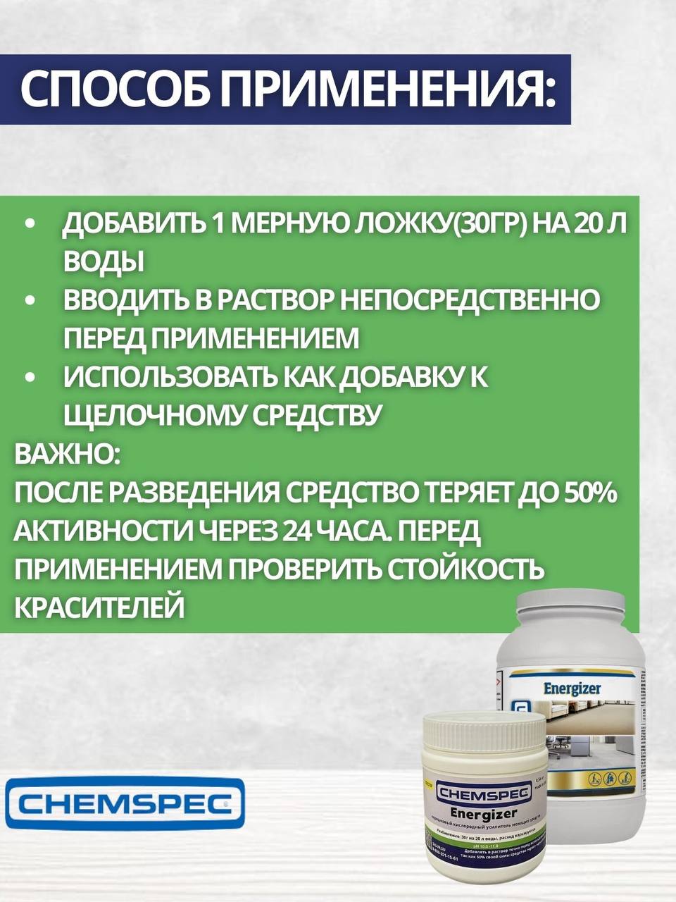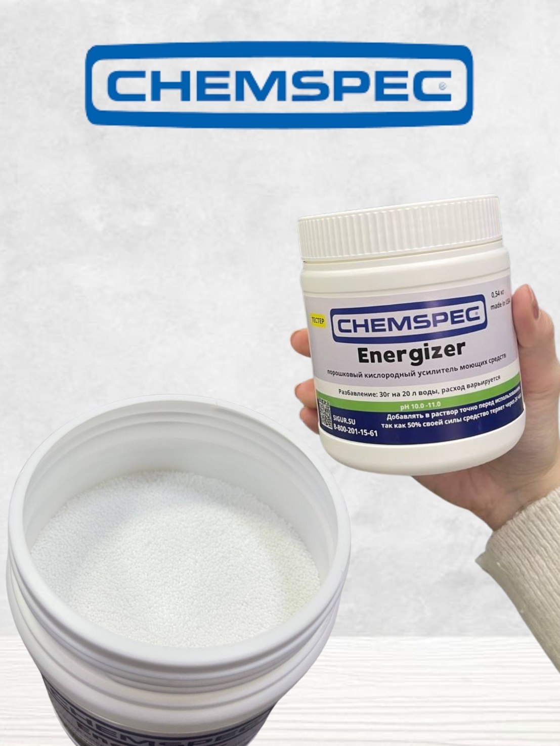 Chemspec: Energizer (Энеджайзер) 0,54кг кислородный усилитель моющих средств. (фасовка,тестер)