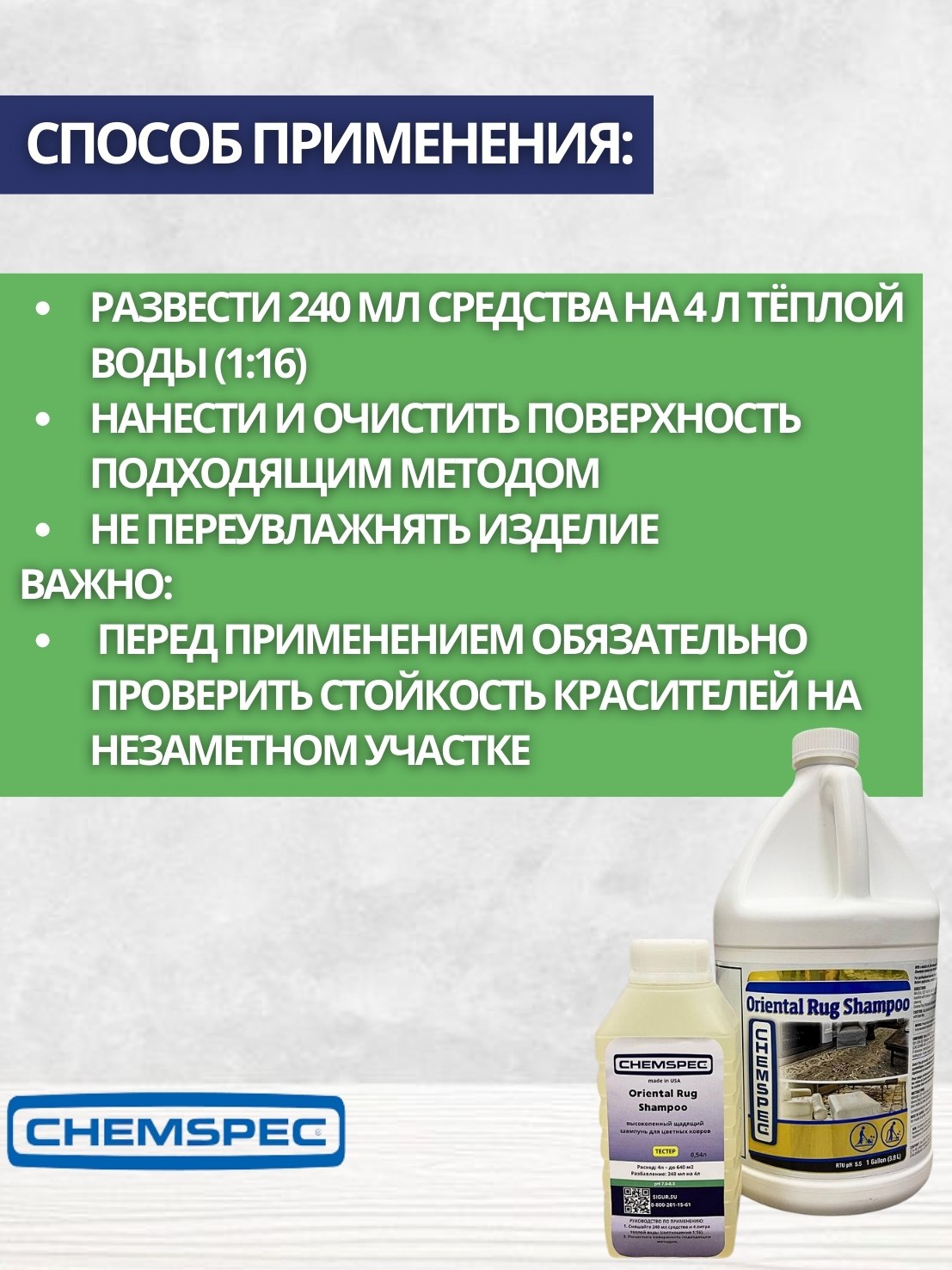 Chemspec: Oriental Rug Shampoo 0,54л высокопенный щадящий шампунь для цветных ковров