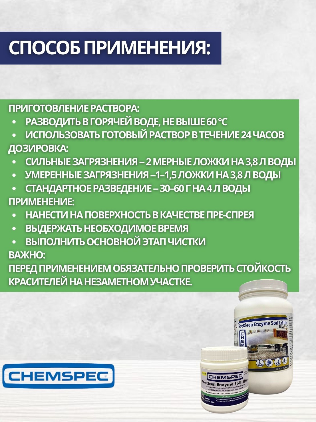 Chemspec: PreKleen (Преклин) Enzyme Soil Lifter 0,54кг бережный энзимный пре-спрей (фасовка,тестер)