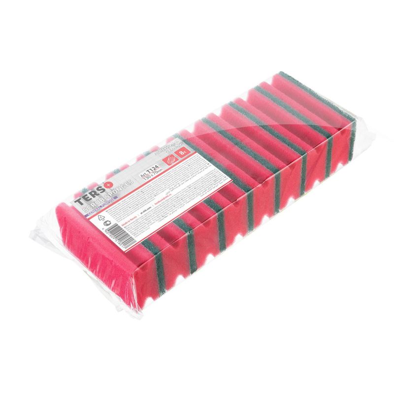 Губка для клининга с абразивом 130х70 (8шт) красный/зел.абразив