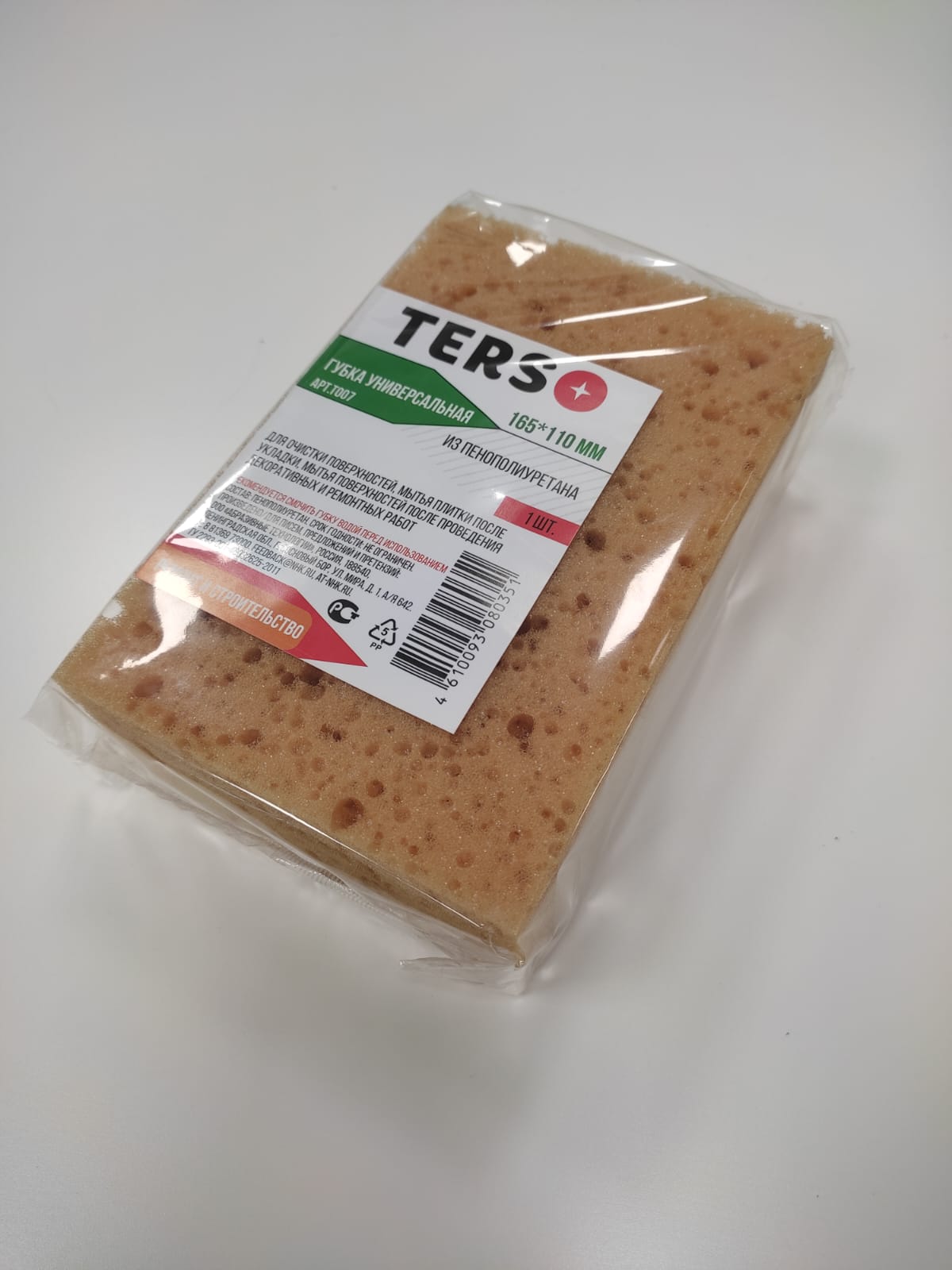 Губка прямоугольная "Terso" 165х110х58мм, поролон