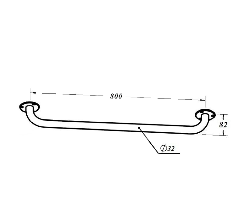 MERIDA: Поручень настенный из нержавеющий для туалета с двумя креплениями, 32мм, дл.800мм