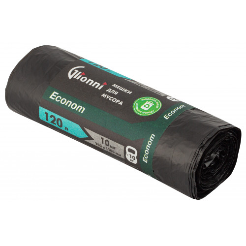 Мешки для мусора: 120л Econom Glionni ПНД, черные, 10мкм,/10кг. 120*64см, 10шт/рул, 50рул/уп