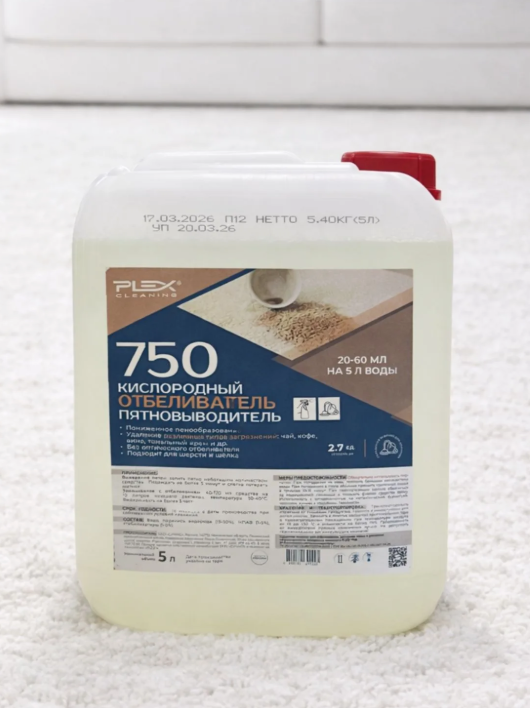 PLEX: 750 Кислородный отбеливатель-пятновыводитель,5л (перекись водорода