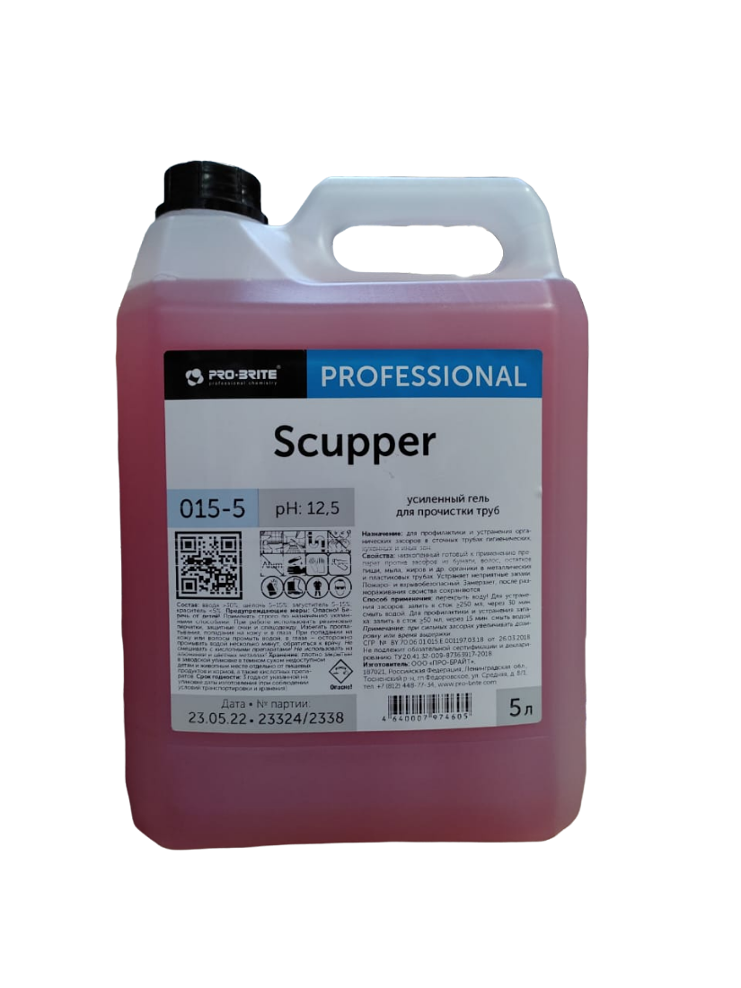Pro-Brite: Scupper 5л/4шт Усиленный гель для прочистки труб