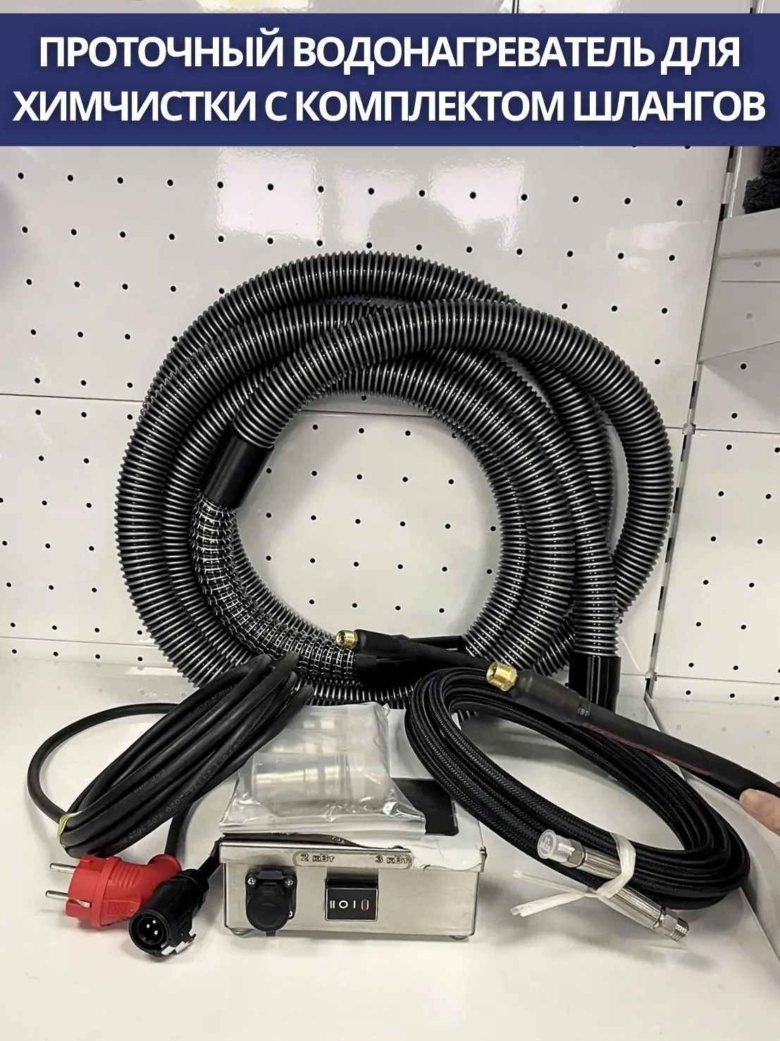 Проточный водонагреватель для химчистки с комплектом шлангов 5м для подключения