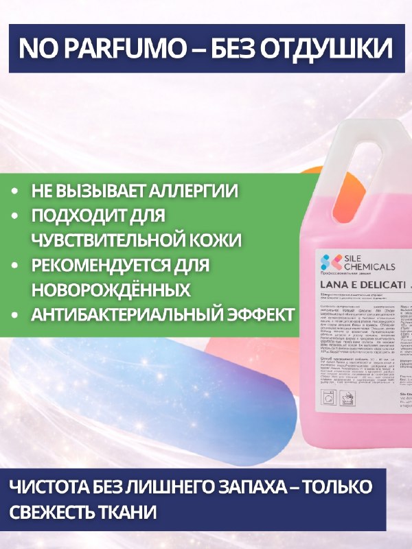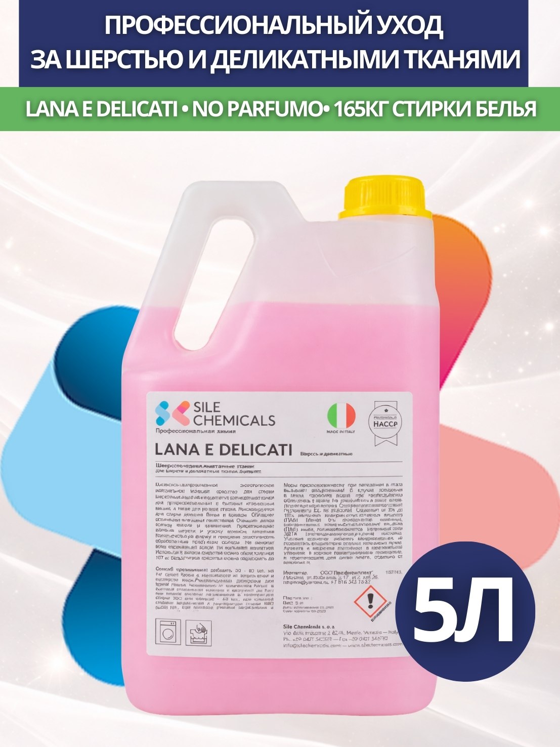 Sile Chemicals: LANA E DELICATI NO PROFUMO д/стирки шерсти, шелка и деликат.тканей 5л./4шт.