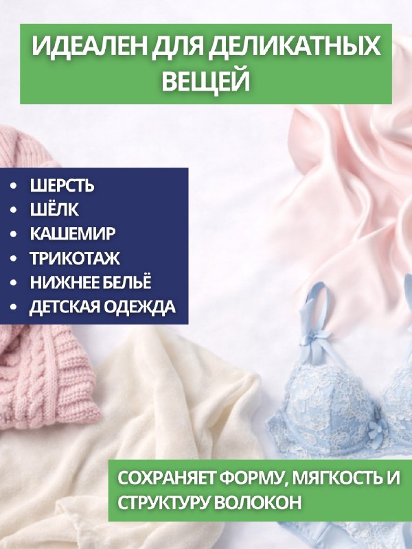 Предотвращает образование накипи, неприятного запаха, производит антибактериальную обработку как самих тканей, так и стиральной машины. Имеет нежный и приятный аромат. Не вызывает аллергию. Не наносит вреда окружающей среде.
