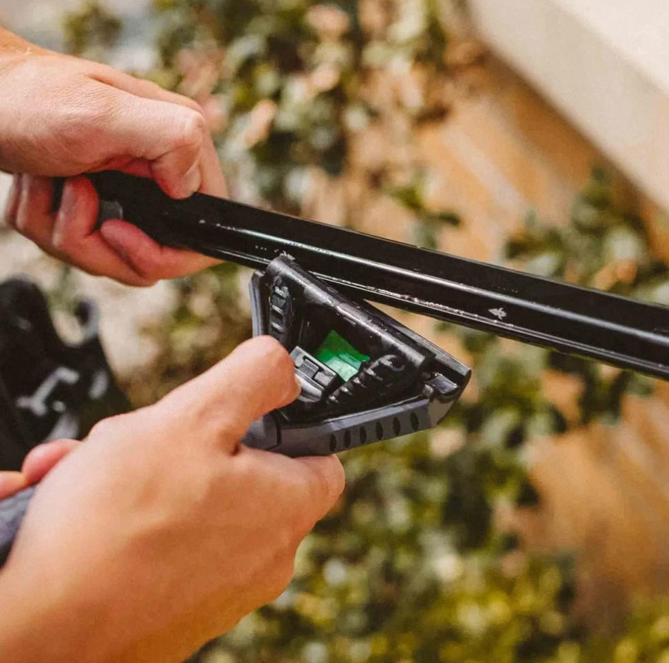 Рабочий узел поворачивается на 180°. Это облегчает работу в труднодоступных местах и на высоте с помощью телескопических штанг. Усилие, которое требуется для поворота, можно легко отрегулировать специальным винтом с помощью обычной монетки. Специальная зеленая кнопка позволяет зафиксировать держатель в центральном положении. S-планка закрепляется в держателе благодаря специальному механизму, который, с одной стороны, гарантирует прочное закрепление, а с другой - позволяет быстро и легко менять положение планки или заменять ее на планку другого размера.Использование планок большой длины значительно снижает время мытья больших окон и повышает производительность труда. Держатель надежно фиксируется на телескопических штангах Unger.