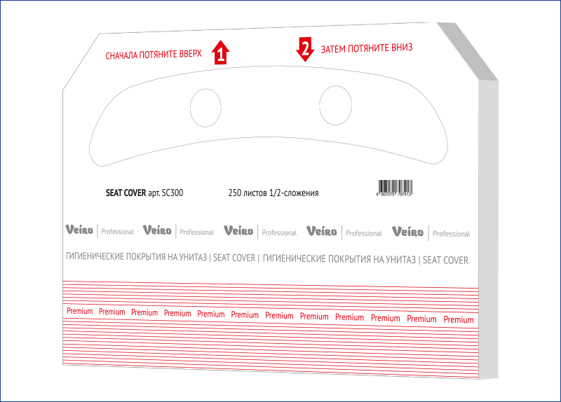 VEIRO: Покрытия гигиенические для унитаза Professional 1/2-сл, 1сл, 250шт, 430*362мм, 10пач/уп, бел.
